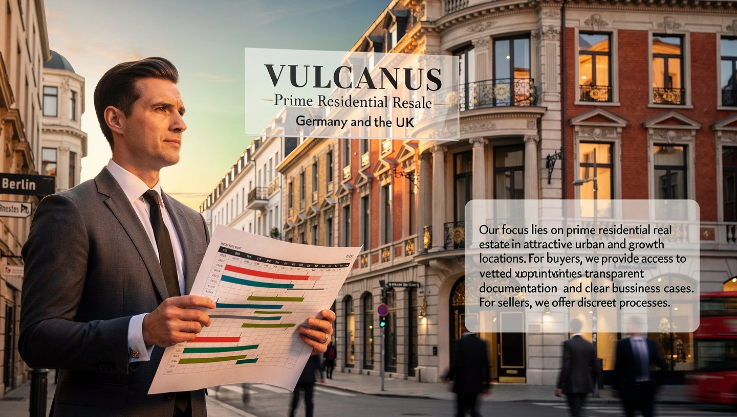 The resale phase is a key value trigger in any residential investment strategy. Vulcanus specialises in residential property resale for high-end apartments, buildings, and portfolios in Germany and the UK. We position your assets professionally, target suitable buyer groups, and manage the process with institutional discipline.